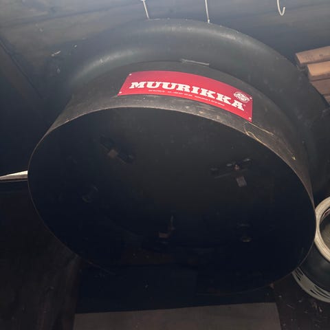 Muurikka-pannu (48cm), jalallinen poltin (Muurikka 300) sekä letku liittimellä. Pannun alkuperäinen Muurikka-pussi kuuluu pakettiin.