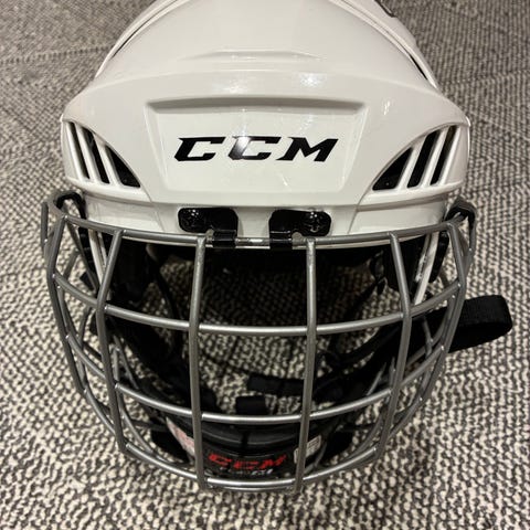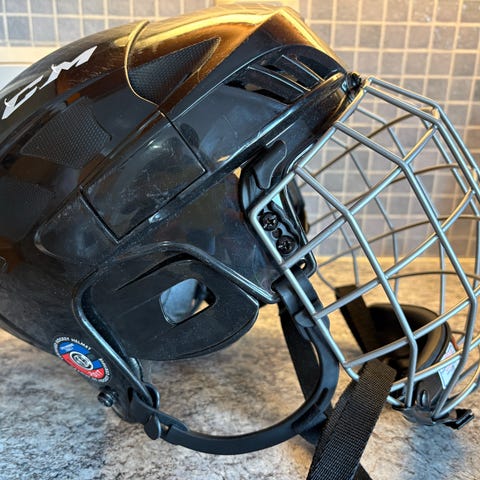 CCM jääkiekkokypärä, jossa metallinen kasvosuoja/ristikko.
