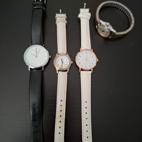 Yhteispakettina 6kpl naisten vintage patterikelloja. Kelloista toimii parhaillaan Pulsar, Helvetia, Leijona ja Fossil. Kaksi Orientia tarvitsee uuden patterin eikä ole testattu toimivuutta. Kaikki kellot päällisin puolin siistejä ja yksinäänkin hintapyynnön arvoisia. Nouto Turusta tai postikulut ostajalle.