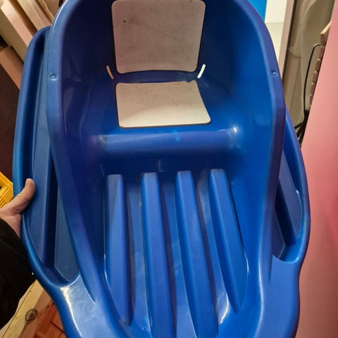 Kuvanmukainen Orthexin vihreä vauvapulkka. Ostettu tehtaanmyymälästä ja siksi värivirheellinen (mustat raidat sivuissa). Vain nouto.