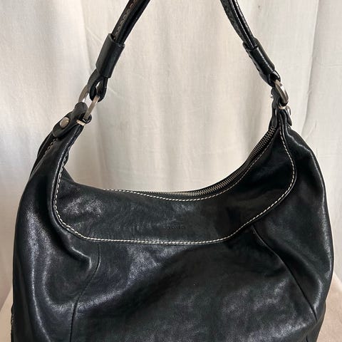 Ihanan pehmeää nahkaa Gianni Chiarini laukku. Mitat: korkeus n. 30 cm, leveys n. 40 cm, pohjan leveys 17 cm. Saa suljettua vetoketjulla ja nepparilla. Sisällä yksi vetoketjullinen ja kaksi avonaista taskua.