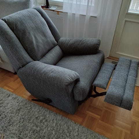 Hyväkuntoinen harmaa nojatuoli irrotettavilla päällisillä. Vain nouto.