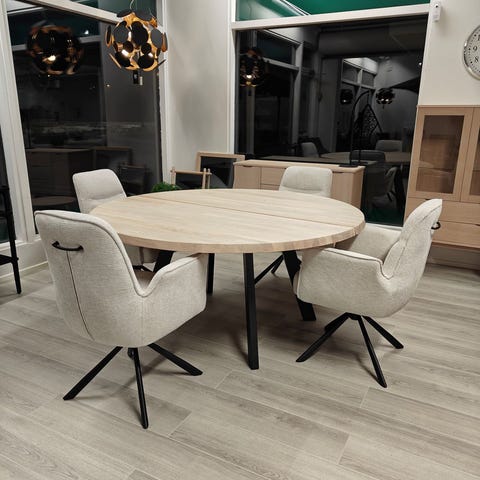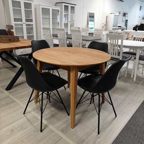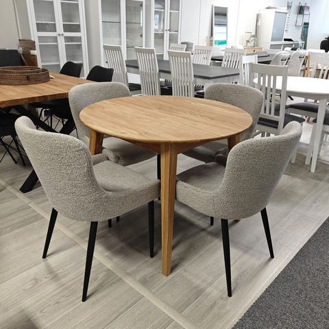 Pyöreä Fred/ Wyoming 6 hengen ruokailuryhmä sopii skandinaavistyylisiin koteihin luomaan tunnelmaa.