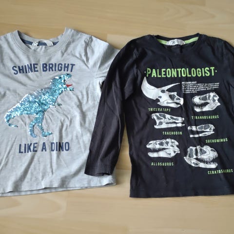 Pakettina paidat, vastaavat n. kokoa 110. Aiheina dinosaurus /dinosaurukset ja kalastus. :) Siisti käytetty kunto. Lindex, Ciraf ja Peuhu. Nouto Tampereen Kalevasta tai ToriDiili. Yhteishinta.