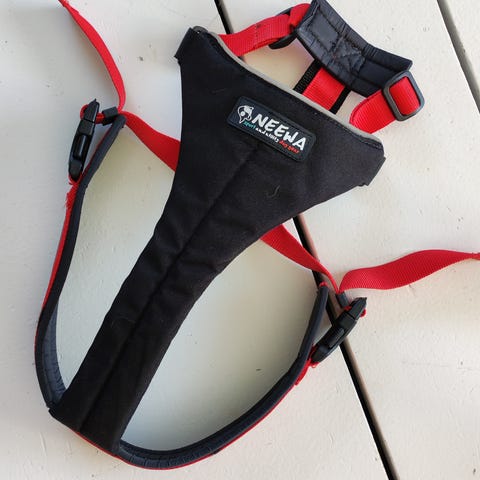 Neewa koiran vetovaljaat musta–punainen. Valjaissa on säädettävät hihnat ja pehmustettu rintakappale, jotka jakavat vedon koiran keholle tasaisesti. Metallinen kiinnityslenkki selkäosassa mahdollistaa vetonarun tai taluttimen kiinnittämisen. Soveltuu esimerkiksi canicrossiin, koirahiihtoon tai muuhun vetourheiluun koiran kanssa, rinnanympärys 54 - 84 cm (M-koko)