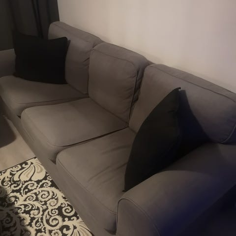 3 istuttavan- ja 2 istuttavan sohvan päälliset. Kunto käytetty, joten kulumaa ja jotain pieniä jälkiä voi olla. Yleisilmeeltään kuitenkin siistit. Pesty ja pikasilitetty pois pakkaamisen yhteydessä, mutta huolellisempi silitys jää ostajalle. Mahdollisuus tutustua noutaessa tuotteisiin paremmin ennen ostopäätöstä.