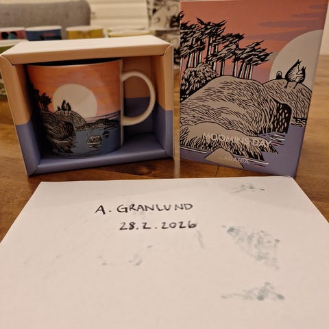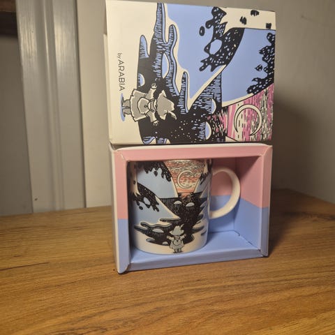 Nyt tällänen leimallinen, käyttämätön laatikossa oleva muumimuki