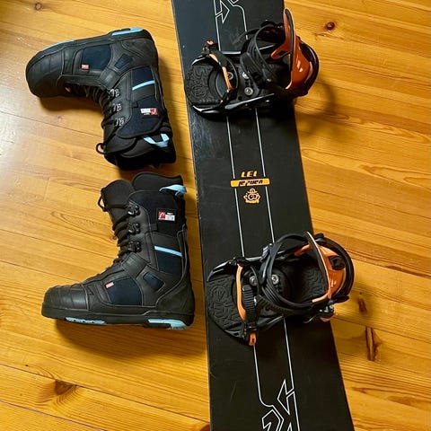 Head lumilautakengät ja siteet. Kengät ovat korkeavartiset nauhakiinnityksellä, väriltään mustat keltaisilla yksityiskohdilla ja vaalealla pohjalla. Mukana tulee Head-lumilautasiteet, joissa on säädettävät remmit ja kantapääkupit. Sopii lasten tai nuorten lumilautailuun yhdessä yhteensopivan laudan kanss