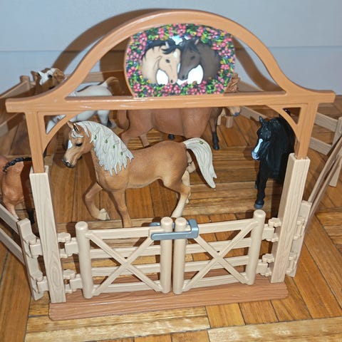Schleich eläinlääkäriauto leikkisetti sisältää hevosteemaisen eläinlääkäriauton, hevoshahmon sekä useita pieniä lisävarusteita. Auton sisällä on tutkimustila, jossa on tutkimuspöytä, laitteita ja hoitotarvikkeita. Mukana on myös kaksi ihmishahmoa sekä erilaisia instrumentteja ja varusteita eläinten tutkimiseen ja hoitamiseen. Toinen varsa ei aito. Setti sopii hevoshahmojen ja eläinlääkärileikkien yhdistämiseen ja on yhteensopiva muiden Schleich-hevos- ja eläinfiguurien kanssa.