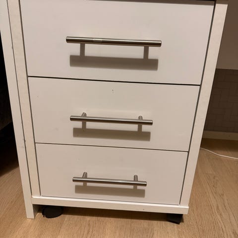 Ok-kuntoinen puinen laatikosto/hyllykkö. Kulumaa kulmissa.