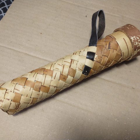 Valmistettu tuohesta ja muista luonnonmateriaaleista.