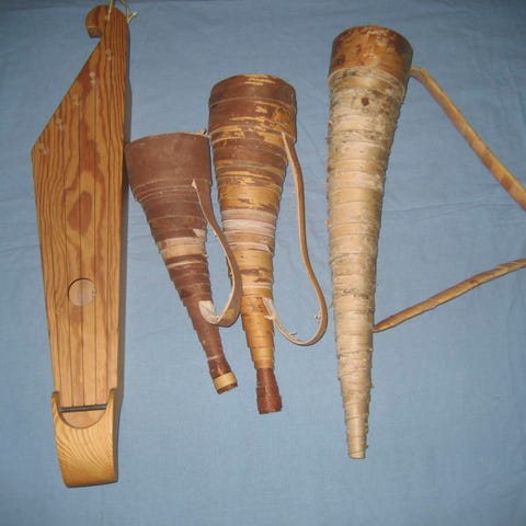 Käsintehdyt tuohitorvet.