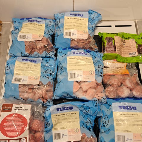 Raakaruokaa koiralle! 3 x 3 kg mush Puppy (nauta-poro-lohi), 4 x 1kg sika-nauta pullia, 4,6kg laatikko sikaa, 3 x 3kg murren valmis virkku (sika-nauta). Kaikissa päiväystä yli vuosi jäljellä. Ovh kaikilla päälle 130€, hintapyyntö 80€