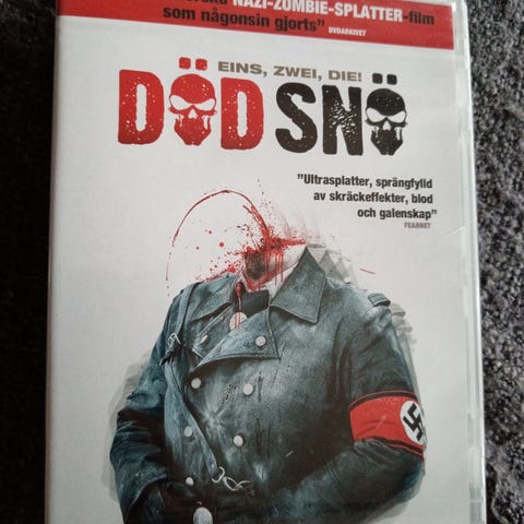 DVD "Död Snö". Erittäin hyvässä kunnossa. Ohjaaja: Tommy Wirkola. Pääosat: Charlotte Frogner, Ørjan Gamst, Stig Frode Henriksen, Vegar Hoel, Jeppe Laursen, Evy Kasseth Røsten, Jenny Skavlan, Bjørn Sundquist, Ane Dahl Torp ja Lasse Valdal. Huomio: DVD on ostettu Ruotsista (tekstitykset vain ruotsiksi; norjalainen ääniraita). Hinta: 20 euroa (sis postin).