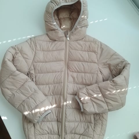 Siisti ja ehjä tuulitakki, 150cm. Kiva murrettu sininen. Verkkovuori ja kiinteä huppu.