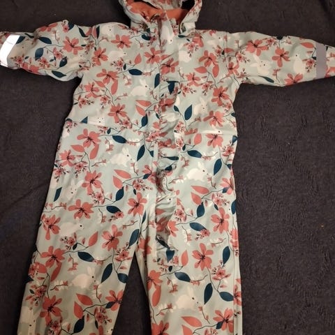 Ok-kuntoimen haalari. Heijastimet aika kuluneet. Toinen jalkalenksu puuttuu. Takana selässä pieni reikä. Muuten ehjä ja valmis kuraleikkeihin!
