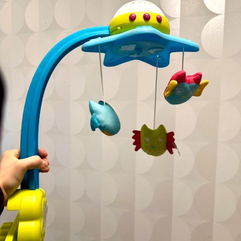 Erikoislaatuinen, monipuolinen musikaalinen pinnasängyn mobile, jossa on valot, musiikki ja pyörivä kierre.