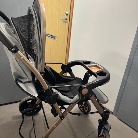 Väri on harmaanmusta kangasosissa. Rattaat saa kasaan aisassa olevasta painikkeesta. Rattaat ostettu alunperin Jollyroomista, ovat arviolta noin 4 vuotta vanhat. Tuplarattaiksi kevyet ja näppärät vaunut. Vain nouto Saunalahdesta