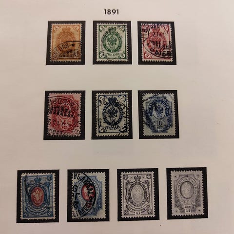 Osa vanhan postimerkkialbumin sivusta.