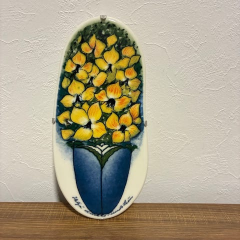 Heljä Liukko-Sundströmin suunnittelema seinälaatta ”Hänelle” vuodelta 1990. Korkeus 40cm, leveys 17cm. Hyvä kunto.