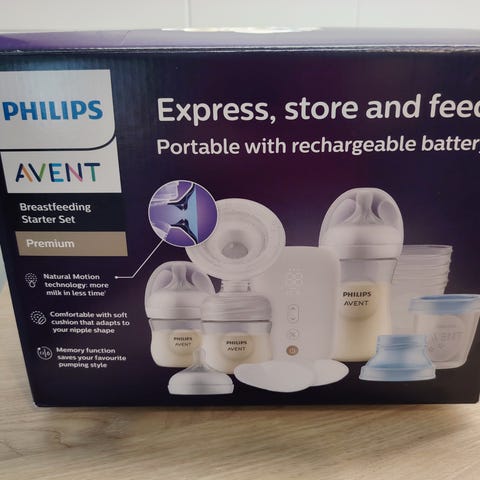 Käytetty satunnaisesti noin 6kk ajan. Takuuta voimassa 10/2026 saakka. Sisältää sekä manuaalisen että sähkökäyttöisen pumpun, joista manuaalinen osa täysin käyttämätön. Sähköpumpussa 9-portainen säätö sekä herutustoiminto. Yhteensopiva mam-tuttipullojen kanssa eli voi pumpata suoraan pulloon. Sisältää 2 tuttipulloa ja koon 0 sekä 2 tuttiosat näihin. Pulloissa vähän pesukoneesta tullutta värjäymää. Lisäksi 2 purkkia maidon säilömiseen sekä vaihto-osia. Maksoi uutena 150€.