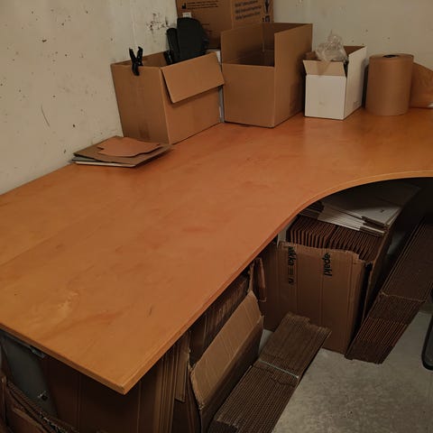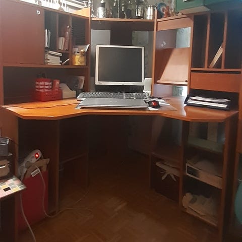 Puinen työpöytä hyllytasolla