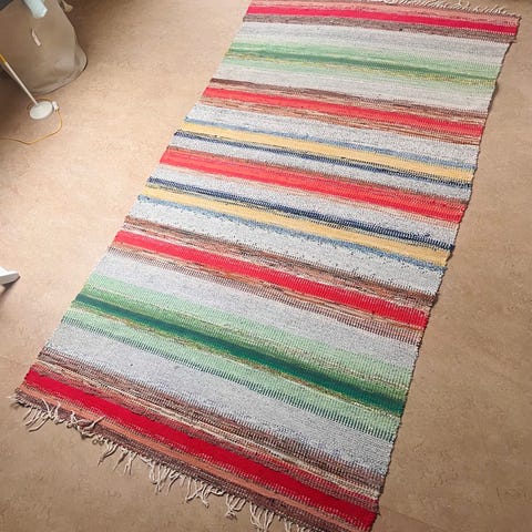 Ihanan räikeä oranssi/ruskea/valkoinen räsymatto.