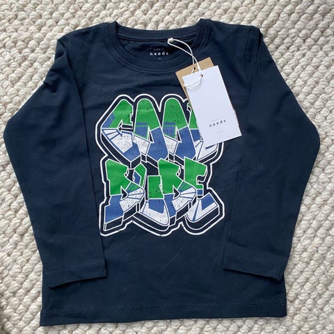 Valkoinen paita lintujen kuvilla, kohokuvissa nukkaa, etupuolella ja toisessa hihassa tahraa. Väri mahdollisesti uudesta tummunut.