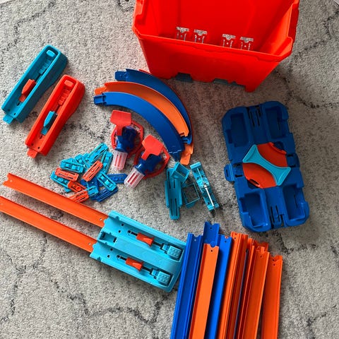 Hot Wheels autorataosat ja -radan palat. Kuvatun kaltainen sekalainen erä erilaisia radan osia, kuten suoria ja kaarevia kiskoja, liittimiä, silmukoita ja muita lisäosia. Sopii Hot Wheels -autoille ja -radoille varaosiksi tai radan laajentamiseen. Tarkka kappalemäärä ja yksittäisten settien nimet eivät ole tiedossa, kokonaisuus myydään kuvien mukaisena eränä.