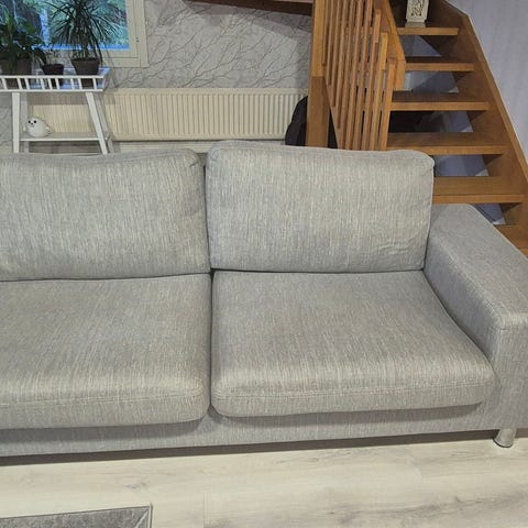ASKO sohva ruskealla kangasverhoilulla. Kolmen istuttava malli, jossa irrotettavat istuin- ja selkätyynyt. Leveät käsinojat ja matala profiili. Sopii olohuoneeseen tai oleskelutilaan yleiskäyttöiseksi istuimeksi.