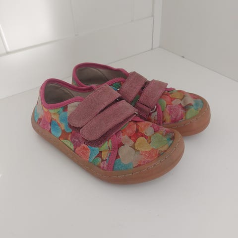Hyväkuntoiset Froddon nahkaiset paljasjalkakengät koossa 25 (16,5 cm). Ostettu uutena ja käytetty syksyn ajan. Täysin ehjät ja tarrat pitää hyvin. Aran värin vuoksi vähäistä tummentumaa.