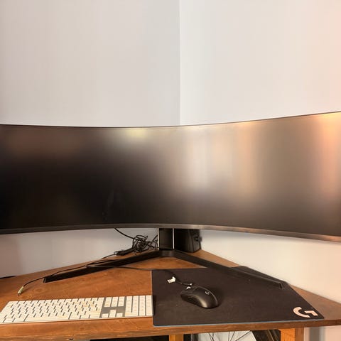 Kaareva 49" OLED -pelinäyttö Dual QHD-resoluutiolla. 240 Hz:n virkistystaajuus ja 0,03 ms:n vasteaika G-Sync -yhteensopivan pelinäytön OLED Glare Free vähentää valoista syntyviä heijastuksia.
