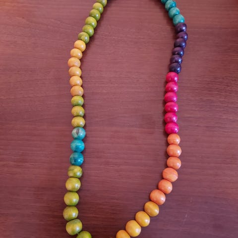 Tästä, en myy merkkituotteena vaikka onkin olettamus siitä että nämä voisivat olla mutta anyway erittäin upeilla väreillä varustetut puuhelmet. Pallot noin 20 mm.