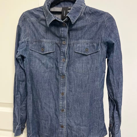 Olkapään kohdalla oli tahra ja peitin sen kukka kuvioilla suihkevärillä, muuten erittäin hyvässä kunnossa. (Hieman suihkeväriä jäljäljellä mitä saa mukaan)