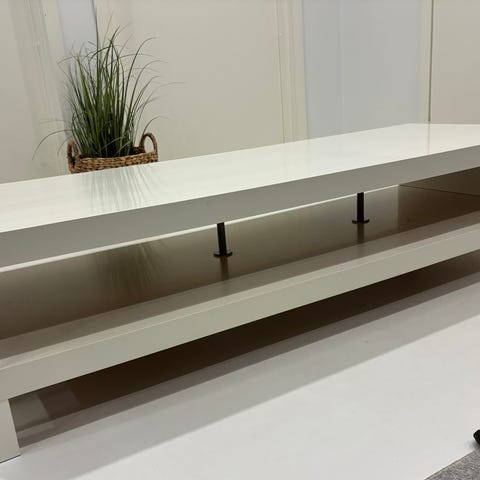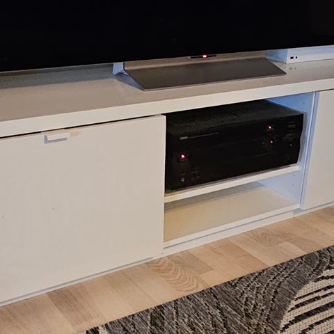 Yleisilmeeltään siisti tv-taso, vetolaatikot molemmin puolin toimivat. Pieniä kuvien mukaisia kolhuja/jälkiä kauttaaltaan ja reunat hieman ajan saatossa kellastuneet. Ei varmuutta onko tämä jyskistä vai ikeasta. Leveys 160cm, korkeus 45cm ja syvyys n. 41,5cm. Tupakoimaton kissatalous. Tarjoa!