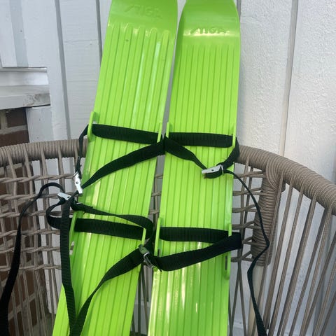 Suksia, sauvoja, minisuksia, pulkkaa, lumikolaa, liukuria, rattikelkkaa, keinua, laskettelulauta. Hinnat 5-10eur. Myynnissä myös muualla.