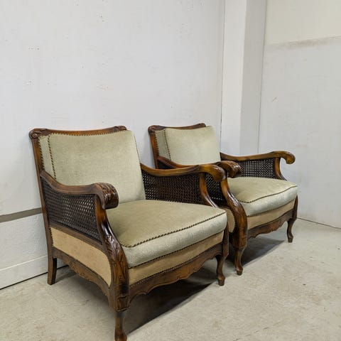 Laadukkaat Hepplewhite tyylin käsinojatuolit 2kpl myytävänä. Molemmat tuolit tukevia ja liitokset kunnossa. Verhoilussa jälkiä. Tarvittaessa helppo verhoilla uudelleen. Istuin irroitettava. Myydään parina.