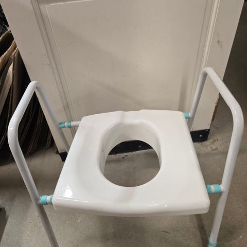 Valkoinen wc-istuimen korotusosa. Sopii wc-istuimen päälle lisäkorkeutta tuomaan. Materiaali muovia. Soveltuu aikuisille tai liikuntarajoitteisille helpottamaan wc-istuimelle istumista ja siitä nousemista. Käytettävissä tavallisen wc-istuimen kanssa, kiinnitys wc-istuimen reunaan.