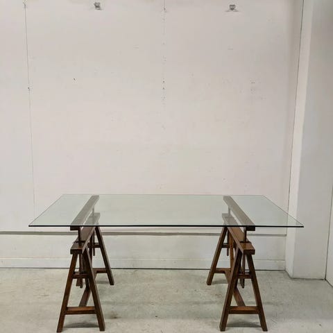 Hienoa korkeussäädettävä design työpöytä myytävänä. 1,2 cm paksu laskikansi sekä pukkijalat. Lasin kulmassa pieni kolhu, lasista ei puutu palaa. Jalat erinomaisessa kunnossa ja kaikki toimii.