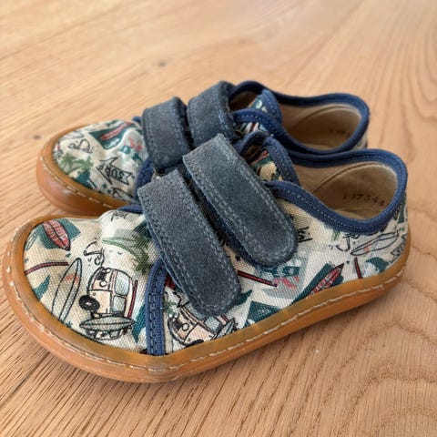 Froddon canvas lenkkarit koossa 24 (16,3 cm). Yhden kesän käytetty. Kumiosassa pientä jälkeä, mutta tikkaukset ehjät.