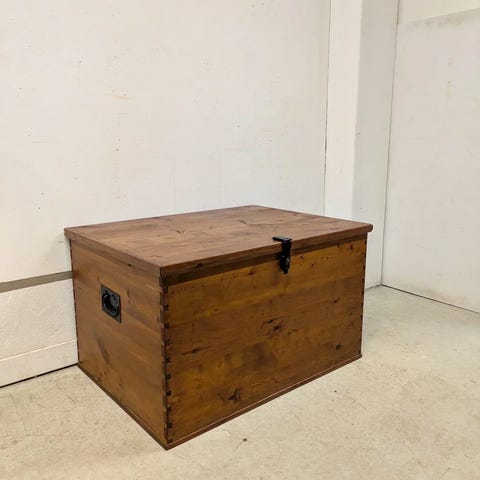 Amerikkalainen uusvanha komea arkku myytävänä. Kansi toimii hyvin. Lukon salpa poistettu, koska ei ole avainta. Kuvan mukaista jälkeä kannessa ja toisessa päässä pari kolhua alaosassa. Sisusta erittäin siisti eikä ole hajuja.