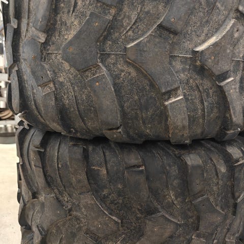 Mönkijän renkaat, koot (2+2) 26x8-14 ja 26x10-14. Kaupan päälle 1kpl vanteita. (Olleet Polaris sportsman 850)
