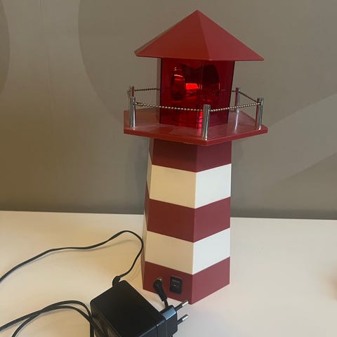 Majakka pöytävalaisin sininen-valkoinen. Valaisimessa on majakkaa muistuttava runko, jossa on sinivalkoiset vaakaraidat ja tummansininen katto. Yläosassa on läpinäkyvä sininen osa, jonka sisällä on valoefektiä tuottava lamppu. Valaisin kytketään päälle ja pois jalustassa olevasta kytkimestä, ja se toimii virtajohdolla. Sopii esimerkiksi tunnelmavaloksi sisätiloihin tai koristeeksi merihenkiseen sisustukseen.