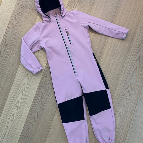 Reima softshell haalari, jossa huppu ja henkselit. Koko 116 cm. Muutoin hyvässä kunnossa ja ehjä, mutta nukkaantunut polvista ja pepusta.