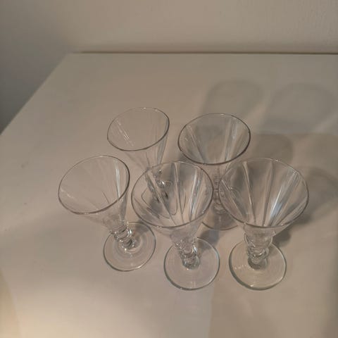 Kuusi kaunista ja ehjää vintage juomalasia.