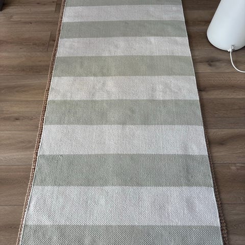 Pesty mustavalkoinen käytävämatto, puuvillamatto, räsymatto. Pesty: Pesumesta, Helsinki