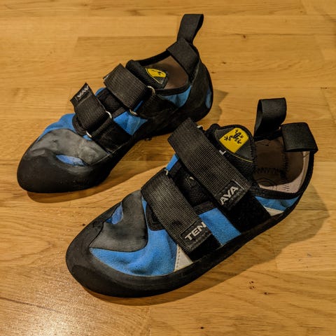 Myydään käyttöä vailla olevat kiipeilykengät. Kapea mall ja pieni kantapää eli sopii lapselle tai sirojalkaiselle aikuiselle. Käytetty sukat jalassa.