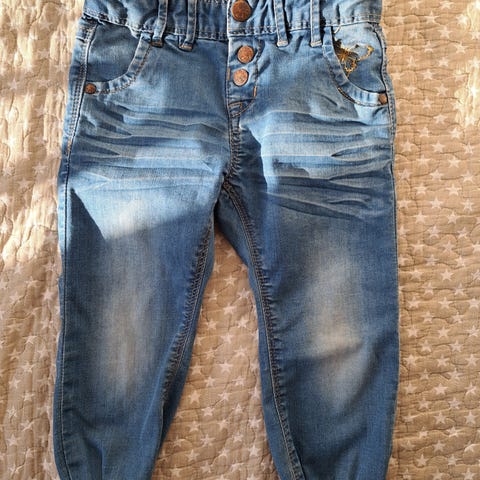 Myydään lasten Lindex farkut koossa 92. Lahkeessa perhosen kuva.