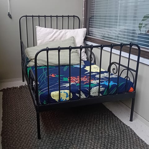 Myydään säädettävä valkoinen sänky, läppäri- ja kirjateline, valkoinen laminaatti. Telineessä on valkoinen taso ja puunväriset reunat. Sivupaneelit toimivat jalkoina ja mahdollistavat pöydän käytön korotettuna tasona esimerkiksi ruokailuun, lukemiseen tai tietokoneen käyttöön sängyssä tai pöydän päällä. Pöydän päädyssä on matala reuna, joka auttaa pitämään kirjan, lehden tai tarjottimen paikallaan. Kolme käyttökorkeutta, 17 cm, 22 cm ja 28 cm. Telineen sisäleveys 56 cm. Tasossa, muutaman asteen, kaltevuussäätö. Soveltuu käytettäväksi kannettavan tietokoneen alustana, aamiaistarjottimena tai pienenä apupöytänä kotona.