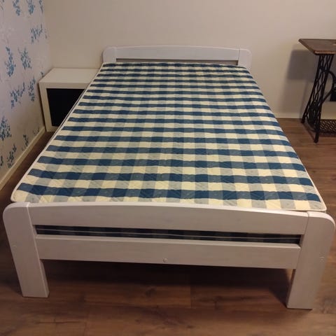 Patjat saa mukaan, sijauspatjassa pientä tahraa. Sängyn pohjasta 1 lauta katkennut, mutta ei vaikuta käyttöön.